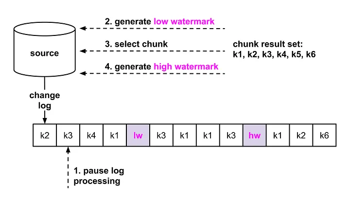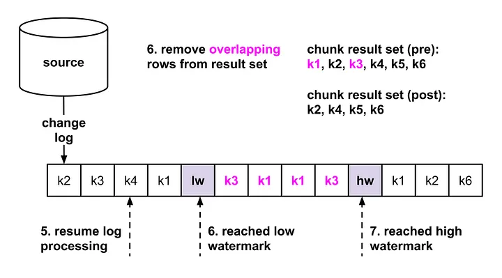 在收到高水印之后我们就可以认为后面全部用 CDC Events Log 恢复正常的流程, 如果写操作在一个单独的线程中处理话,可以是一个 非阻塞操作.