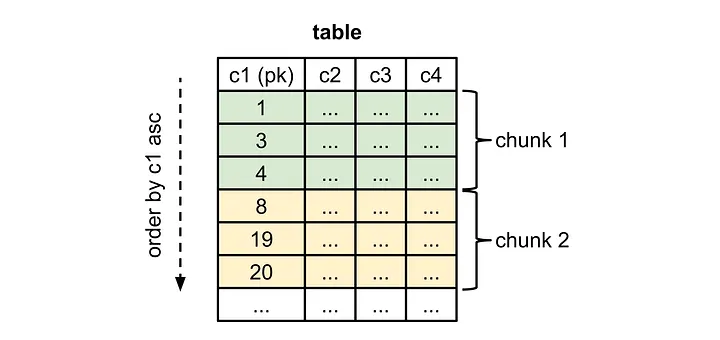 如果数据基本连续,通过 minIdmaxId 切分为多个 Chunk 是非常简单的. 如果数据不连续: