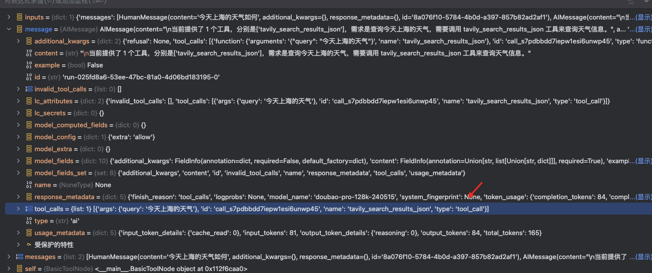 这里的核心上下文内容是通过 内部特殊的 tool_message 封装消息. Debug 内容如下